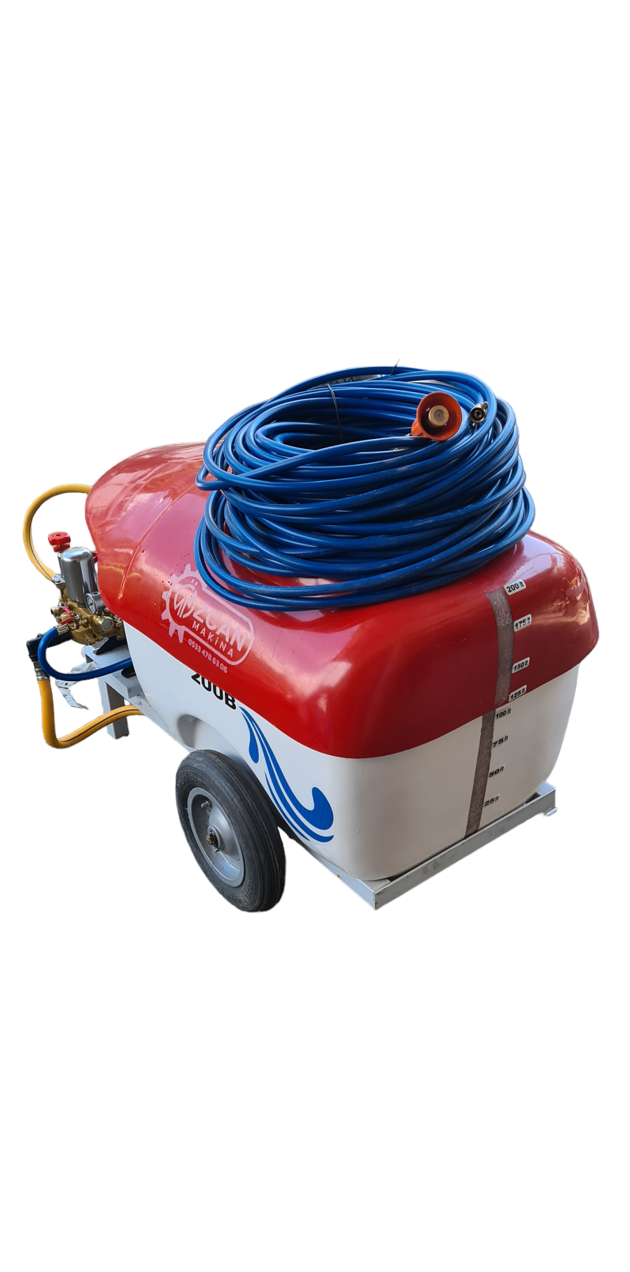3 pistonlu 30'luk pompa 45 bar basınç güçlü karıştırma sistemi 300 metreye kadar hortum ile çalışabilen 7.5 hp 4 zamanlı Benzinli motor